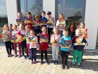 In der Woche vor Ostern bastelten wir mit den Kindern Hühner aus Filz. Der Hühnerkörper, Flügel, Schnabel und Kamm wurden mit Schablonen auf Filzplatten aufgezeichnet und dann ausgeschnitten. Als Füsse dienten Papierstrohhalme und das fertig zusammengebaute Huhn wurde auf vorgebohrte Holzplatten gesteckt. Besonders viel Spaß machte den Kindern das bekleben der Holzplatten mit Moos, Eierschalen, Federn und Holzstückchen.