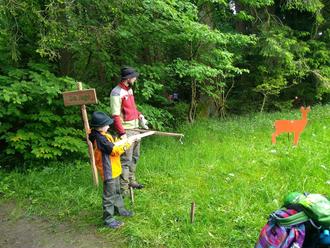 Die Highlights waren mit einer Holzarmbrust auf ein Reh aus Blech zu schießen und unsere Klassenkameradin an einem Seil so zu halten, dass sie zu einem Beutel mit Goldstücken klettern konnte. Aber alle anderen Spiele waren auch super!