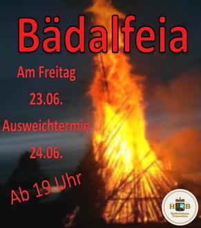 Zum traditionellen Peter- und Paulfeier, oder auch „Bädalfeia“ genannt, lädt der Burschenverein am Freitag, 23. Juni ab 19 Uhr auf dem Parkplatz an der Pfarrkirche St. Laurentius ein. Nach Sonnenuntergang wird das Peterlfeuer entzündet. Bei Schlechtwetter ist der Ausweichtermin für das Bädalfeia am Samstag, 24. Juni, ebenfalls um 19 Uhr. Für das leibliche Wohl der Besucher sorgen die Aktiven des Burschenverein.