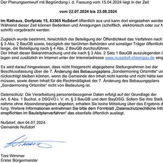 7. Änderung des Bebauungsplans „Sondermoning Ortsmitte“