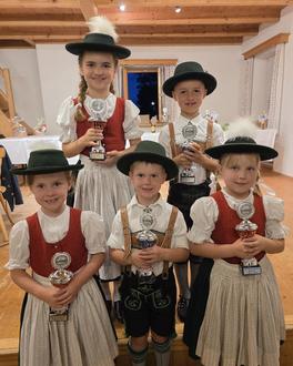 Besondere Aufmerksamkeit der Zuschauer galt wie immer den jüngsten Teilnehmern, die schneidig zeigten, was sie in den Proben und in Vorbereitung auf das Preisplatteln gelernt haben. Auf den ersten Platz der Gruppe „Dirndl Anfänger“ drehte sich Leni Kaiser. Sie siegte vor Emilia Ober und Emilia Wagner. In der Wertungsklasse „Dirndl 1A“ holte sich Anna Lena Steiner den Sieg vor Anna Kaiser und Romy Purzeller. Bei den „Dirndl 1B“ sicherte sich Johanna Schroll den Meistertitel vor Katharina Gschwendner und Lena Flassak. In der Gruppe der Buam 1, die den Heisei plattelten, siegte Jakob Niederbuchner mit deutlichem Punktevorsprung vor Raphael Steiner. Dritter Sieger wurde Korbinian Rächl.