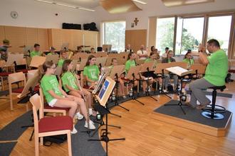 An einem sommerlichen Vormittag veranstaltete die Musikkapelle einen Infotag mit Instrumentenvorstellung. Nachdem Elmar Walter mit den Nachwuchsbläsern einen kleinen Einblick in die Probenarbeit zeigte, wurden mit viel Freude die verschiedenen Instrumente ausprobiert.
