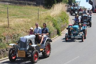 Auf der Rundfahrt durch das Dorf präsentierten die Bulldog- und Mopedfahrer ihre Gefährte in Aktion.
