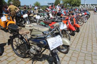Auch die Moped- und Schnaggei-Raritäten wurden bestaunt. Das älteste motorisierte Zweirad war ein Phänomen M 27m Baujahr 1934, mit dem Helmut Schauer aus Nußdorf-Hartmann nach Nußdorf anreiste, einen Kilometer weit.
