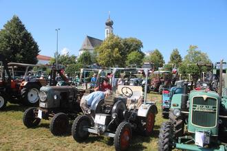 Nußdorf. Schwarzer Rauch aus Auspuffrohren, der Geruch von Diesel und Fett, aufpolierte Motorhauben oder stumpfer Lack, von jahrzehntelanger Beanspruchung gezeichnet. Die Motorengeräusche hochbetagter Traktoren prägten den Nußdorfer Dorfplatz beim Bulldog- und Mopedtreffen. Mehr als 330 historische Schlepper sowie motorisierte Zweiräder, die fast alle mindestens 50 Jahre alt sind, kamen bei herrlichem Sommerwetter zum diesjährigen Oldtimer-Treffen, das von der Freiwilligen Feuerwehr bereits zum 13. Mal ausgerichtet wurde.