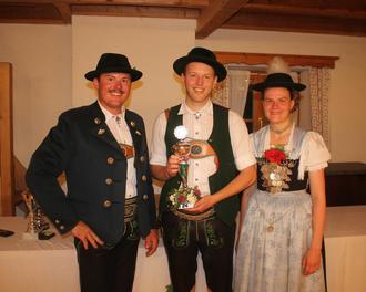 Strahlende Gesichter bei den Siegern der Aktiven und Altersklasse. Bei den Aktiven Buam siegte Andreas Niederbuchner (links) und bei den Aktiven Dirndl seine Schwester Christina (rechts). Die Altersklasse dominierte Tobias Purzeller.