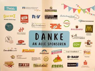 Ein Plakat mit allen Spendern und Sponsoren, die zum Erfolg der großen Tombola bei der Jubiläumsfeier zum 50. Geburtstag des Pfarrkindergartens beigetragen haben, hängt im Kindergarten aus.