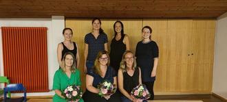 Die neue Vorstandschaft des Fördervereins (stehend von links): Jennifer Höllthaler, Alexandra Huber, Maria Müller, Hildegard Huber, Hanna Reich (nicht auf dem Bild) Scheidende Vorstandschaft (sitzend von links): Nicole Meier, Melanie Salentin, Susanne Kohlruß