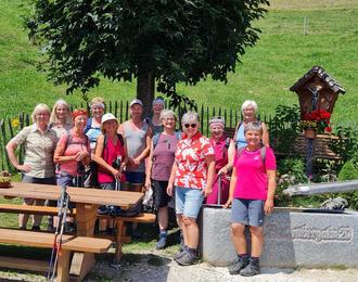 Man kann sich einfach auf Resi und Maria verlassen. Die Beiden haben eine wunderschöne Wanderung, der Witterung entsprechend, ausgesucht. Ein angenehmer, abwechslungsreicher Wanderweg entlang einem rauschenden Bergbach ging es über die Feldlahnalm, einen Steig hinauf zur Rechenberg-Alm. Die Alm liegt auf 1190 Meter und es erwartete uns eine Sonnenterrasse mit üppiger Blumenpracht. Es gab eine almtypische Brotzeit, hausgemachte Kuchen und leckeren Kaffee. Der Senner hat seine Alm im Griff. Er wusste Geschichten und Witze zu erzählen und zeigte uns den blitzsauberen Kuhstall, worauf er sehr stolz war. In der Gruppe zu wandern stärkt das Gefühl der Verbundenheit und Zusammengehörigkeit, deshalb hoffen wir das nächste Mal auf viele Wanderer, die mit uns den Tag verbringen wollen.