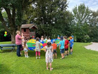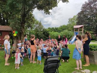 Trotz der ungünstigen Wettervorhersage und der daraus resultierenden Planänderung, das Sommerfest des Kindergartens und der Krippe Nußdorf nicht wie geplant am Nachmittag mit den Eltern, sondern am Vormittag als Kinderfest zu feiern, war die Veranstaltung ein großer Erfolg. Die Kinder genossen den Tag in vollen Zügen und hatten bei Sommer-Party-Musik viel Freude und Spaß.