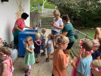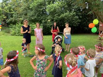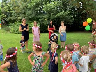 Mit Liedern, einem Tanz und selbstgebackenen Muffins wurde der 30. Geburtstag des Fördervereins gemeinsam mit den Kindern und dem Team von Kindergarten und Krippe beim Kinder-Sommerfest am Vormittag gefeiert.