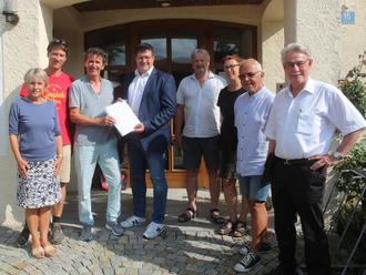 Eine Liste von Maßnahmen zur Verbesserung der Verkehrssicherheit und weniger Lärm in und durch Sondermoning übergaben die Vertreter der Bürgerinitiative zusammen mit 253 Unterstützerunterschriften an Bürgermeister Toni Wimmer (4. von links). Initiatoren der BI sind (von links): Rosi Mittermaier-Mühldorfer, Franz Aigner, Stephan Scholz, Franz Huber, Martina Scholz, Reiner Weist und Peter Neubauer.