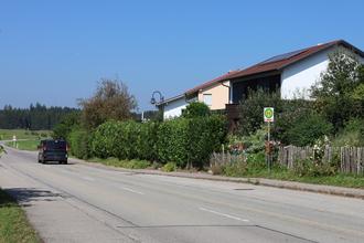 Vom Gemeinderat abgelehnt wurde der Antrag auf Bau einer Terrasse mit eingelassenem Pool an der Südseite des Einfamilienhauses (im Bild rechts). Grund für die Ablehnung ist die Anbauverbotszone zur Kreisstraße hin, die für das Grundstück auf zehn Meter festgesetzt wurde. Mit dem Bau der geplanten Terrasse mit Pool würde der Abstand nur noch sechs Meter betragen. Dem stimmt das Landratsamt Traunstein und ebenso der Gemeinderat nicht zu.