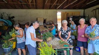 Die Mitglieder der Frauengemeinschaft Nußdorf trafen sich zum gemeinsamen Kräuterbuschenbinden bei Heidi. Die Kräuter wurden mit großer Sorgfalt ausgewählt, um die symbolische Bedeutung im Kräuterbuschen zu würdigen. Königskerze, Ringelblume, Johanniskraut, Salbei, Thymian, Kamille und Rosmarin werden seit Jahrhunderten mit schützenden und heilenden Eigenschaften in Verbindung gebracht. In kurzer Zeit hatten wir 120 Kräuterbuschen gebunden und hatten noch Zeit für Kaffee und den hervorragenden Zwetschgendatschi der von Inge gebacken wurde. Die Kräuterbuschen wurden während des Gottesdienstes an Maria Himmelfahrt feierlich gesegnet und nach dem Gottesdienst gegen eine Spende abgegeben. Die Frauengemeinschaft möchte sich an dieser Stelle herzlich bei allen bedanken, die gespendet haben. Ein besonderer Dank gilt auch den fleißigen Helferinnen, die in den Tagen vor Maria Himmelfahrt die Kräuter gesammelt und mit uns die Buschen gebunden haben. Es kam eine beachtliche Summe von 620 Euro zusammen. Die Vorstandschaft überreichte die Spende an unseren Messner für die Kirchenrenovierung Nußdorf. C.K.