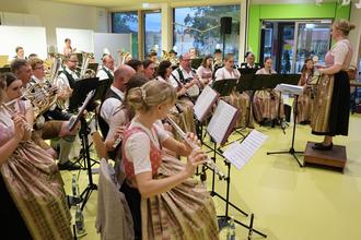 Einen unterhaltsamen Konzertabend mit Polka, Marschmusik und Walzer bot die Musikkapelle Nußdorf unter der Leitung von Angelika Dusch in der Aula der neuen Grundschule.