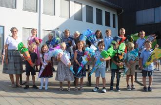 Fünf Mädchen und elf Buben wurden am ersten Schultag in der Grundschule in Nußdorf begrüßt. Klassenleiterin Stefanie Fellner und Schulleiterin Bärbel Neumayr-Scherl hießen die Erstklässler sowie deren Eltern und Großeltern auf dem Pausenhof willkommen. Die Kinder der 2. bis 4. Klasse bildeten einen großen Kreis um die ABC-Schützen und begrüßten sie mit der Schulhymne „Lasst uns singen - Hand in Hand“. In der Aula wurde die Begrüßungsfeier fortgesetzt. Neumayr-Scherl betonte, dass die Buben und Mädchen in guten Händen sind und nun zu einer Schulgemeinschaft gehören, die einander hilft und füreinander da ist. „In der Nußdorfer Schule ist man nicht allein“, hob die Schulleiterin hervor. „Immer ist ein Lernpate oder Unterstützung zur Stelle. „Traut Euch zu fragen“, forderte Neumayr-Scherl auf und schnell wird es für ein Problem eine Lösung geben. Die Kinder der 4. Klasse machten den Neulingen Mut und versicherten mit einem Lied, dass Schule viel mehr sei als Pauken und Plagerei, sondern Spaß macht.