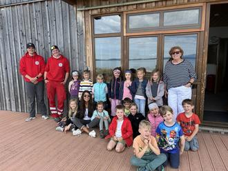 Für die Vorschulkinder war der Sommer besonders ereignisreicht. Sie besuchten die Wasserwacht in Chieming. Dabei durften die Kinder das Haus anschauen, den Sanitätsraum besichtigen und in den Notfallrucksack hineinschauen. In einem Film wurde gezeigt, was bei einem Sturm am Chiemsee passieren kann. Außerdem wurde das Einsatzgebiet der Wasserwacht erklärt.