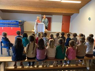 Ebenfalls im April war die Zahnärztin Frau Schweier im Nußdorfer Kindergarten zu Besuch. Durch ein lustiges Puppenspiel zeigte sie den Kindern, wie sie ihre Zähne gesund erhalten können.