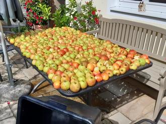Äpfel sollten eigentlich auf dem Tisch landen und nicht auf der Straße, an Erntedank legt man sie sogar auf den Tisch des Herrn. Sicher fallen hier in Nußdorf, am Vereinsheim, einige Äpfel auf die Straße, weil einfach nicht mehr Platz da ist. Aber Kinder, was habt Ihr Euch denn dabei gedacht, sich einfach der Äpfel zu bedienen um diese auf die Straße zu legen, damit sie die Autos platt fahren und Ihr Spaß daran habt? Ein respektloser Umgang mit einem Lebensmittel! Außerdem sind diese Äpfel a) nicht Euer Eigentum und b) sollten sie doch zu Apfelsaft verarbeitet werden, den Ihr vom Gartenbauverein gespendet bekommt, am Kindergarten und Grundschule Nußdorf. Kinder, das ist alles mächtig viel Arbeit, bis so ein 3-Liter-Karton bei Euch ankommt. Alleine der Zeitaufwand für Pflege der Bäume, Fallobst entfernen, Transport, Einlagerung und Sortierung, evtl. dann auch ausschneiden der Äpfel, waschen etc. etc. Für ca. 15 Karton Apfelsaft brauche ich gut 2 Tische voll Äpfel, wie ihr auf dem Bild seht. Dann kommen ja auch noch Kosten für Verarbeitung und Verpackung hinzu. Also denkt mal darüber nach - oder sollten auch die Eltern darüber nachdenken?