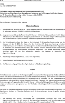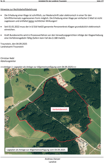 Sicherheitsrechtliche Allgemeinverfügung über ein Betretungs- und Befahrungsverbot für den Wald an der TS 46 zwischen Sondermoning und der Kreuzung mit der St 2096;