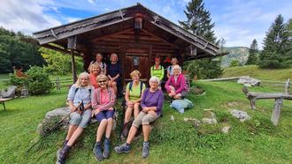 Am Dienstag den 19.09.2023 machten sich 10 Wanderinnen auf den Weg zur Reiter Alm bei Weißbach. Von Weißbach an der Alpenstraße aus wandert man durch dichten Wald, der sich erst bei der Reiter-Alm lichtet. Über weite Teile des Weges wurden wir vom fröhlich plätschernden Litzlbach begleitet. Die Almhütte strahlte eine gemütliche Atmosphäre aus, wir nahmen auf der sonnigen Terrasse platz. Es gab eine hervorragende Speckknödelsuppe und Erbsensuppe. Abgerundet wurde unsere Einkehr mit einen guten Nusserle. Es war ein schöner Tag und wir freuen uns schon auf das nächste Mal. C.K.