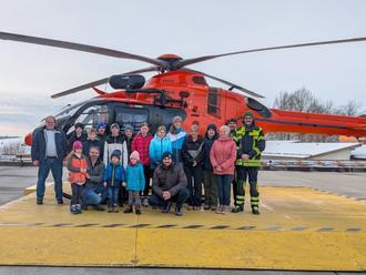 Zum Abschluss und Höhepunkt des Tages ging es nach Traunstein zum Hangar des Rettungshubschrauber Christoph 14, wo die Jugendlichen alles Wissenswerte zum „Rettungsdienst aus der Luft“ erfuhren, die Luftrettungsstation kennenlernten, einen interessanten Vortrag erlebten und natürlich einen Blick in den Rettungsheli und dessen Ausstattung werfen durften.