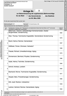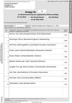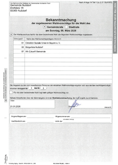 Bekanntmachung zugelassene Wahlvorschläge Gemeinderat