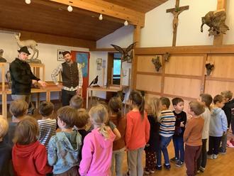 Große Aufregung herrschte am 16.10.2025 im Kindergarten Nußdorf: Die Nußdorfer Jäger, Florian Höllthaler und Olaf Rath, waren zu Besuch, um den Kindern den Wald und seine Bewohner auf liebevolle und spannende Art und Weise näherzubringen. Mit großer Begeisterung folgten die Kinder den Aussagen der Jäger. Mit im Gepäck hatten diese auch zahlreiche präparierte Tiere, die die Kinder aus nächster Nähe betrachten durften. Besonders spannend war es, einmal das weiche Fell oder die Federn eines Waldbewohners zu streicheln. Mutige Kinder konnten sogar das Gebiss eines echten Tieres ertasten. Zum Abschluss des besonderen Vormittags erhielt jedes Kind eine kleine Tüte mit Informationsmaterial rund um den Wald und seine Tiere. Außerdem überreichten die Jäger jeder Kindergartengruppe eine Becherlupe, mit der die jungen Naturforscher künftig selbst auf Entdeckungsreise gehen können. Angeregt durch den Besuch möchte der Kindergarten künftig regelmäßig sogenannte Waldtage durchführen. Den ersten Ausflug in die Natur wird Herr Rath, einer der beteiligten Jäger, begleiten. Vielen Dank noch einmal an Herrn Höllthaler und Herrn Rath für diesen rundum gelungenen Besuch!