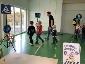 Ebenfalls im Oktober kam die Verkehrswacht in den Nußdorfer Kindergarten. Zu diesem Nachmittag waren die Eltern mit den Kindern eingeladen und konnten sich an acht Mitmach-Stationen anschaulich über verschiedene Themen informieren: Kindersitze und Anschnallen, Kleidung bei Dunkelheit, Rollerparcours, etc. An jeder Station gab es einen Stempel und am Ende für alle Kinder eine kleine Überraschung (einen Leuchtanhänger) fürs fleißige Mitmachen.