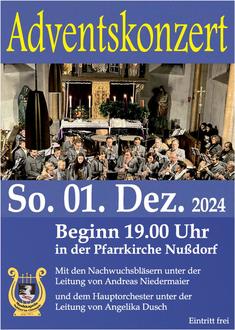 Im Anschluss wird euch das Hauptorchester der Musikkapelle Nußdorf einen weihnachtlichen Konzertabend bereiten. Die neue Kapellmeisterin Angelika Dusch und die Musikanten der Musikkapelle freuen sich auf viele Besucher.