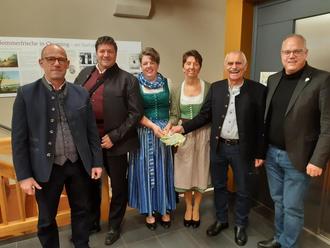Bild der Spendenübergabe von links: Bürgermeister Stefan Reichelt, Bürgermeister Anton Wimmer, Frau Irmingard Wagner, Frau Christine Wimmer, Verbandsvorsitzender Benno Graf, Bürgermeister Martin Bartlweber