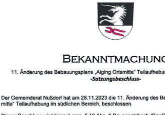 11. Änderung des Bebauungsplans „Aiging Ortsmitte“ Teilaufhebung im südlichen Bereich