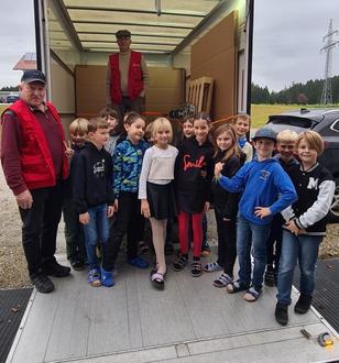 Beim Verladen der Päckchen in den Transporter packten die Kinder eifrig mit an. Die ehrenamtlichen Helfer sorgen nun dafür, dass diese rechtzeitig an bedürftige Kinder verteilt werden können.