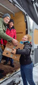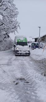 Genau am „Schneechaos-Samstag“ war die diesjährige Sammelaktion von „Junge Leute helfen“. Zum Glück kam Hilfe vom Nachbar mit seiner Schneefräse, damit der Anlieferung nichts im Wege stand.