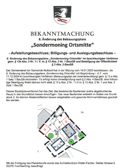 8. Änderung des Bebauungsplans „Sondermoning Ortsmitte“