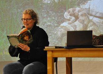 Kinder- und Jugendbuch-Autorin Katja Brandis liest bei der Steiner Literaturwoche vor vielen begeisterten Schulkindern aus ihrer „Woodwalkers“-Reihe