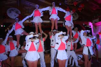 Die „Wilden Hühner“ führten einen lustigen und begeisternden Tanz der Zwerge auf, die Röckifrauen zeigten eine außergewöhnliche „Hut-Parade“, vom Cowboyhut bis zur Nonnenhaube und die „blau-weißen Faschingsfreunde“ aus Kammer unterhielten mit einer tollen, akrobatisch anspruchsvollen und alle Blicke auf sich ziehenden Tanzshow. Dass sich die närrische Gemeinde rundherum wohl fühlen konnte, dafür sorgte Faschingsverein-Chefin Tine Czogalla mit ihren engagierten Helferinnen und Helfern, die im Service und in der Küche, an Bar, im Vorder- wie Hintergrund stets parat und die Feiernden umsorgten.