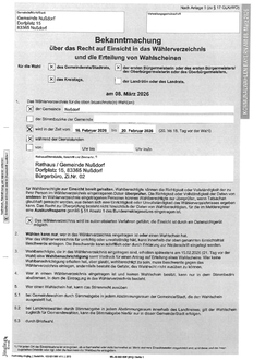 über das Recht auf Einsicht in das Wählverzeichnis und die Erteilung von Wahlscheinen