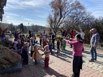 Mit Musik und lustigen Verkleidungen haben wir die Harter Firmen besucht. Bei der Firma Mayer wurden wir mit einer leckeren Brotzeit empfangen. Bei den anderen Firmen gab es leckere Süßigkeiten und eine große Kiste voll mit Äpfeln. Wir haben gemeinsam getanzt, gesungen und