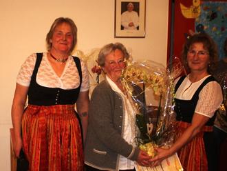 Für 60 Jahre Mitgliedschaft und Treue zur Frauengemeinschaft Nußdorf wurde Anneliese Neuhauser geehrt. Die Vorsitzenden Helene Lex und Heidi Meisinger überreichten eine Ehrenurkunde und ein Blumengeschenk.