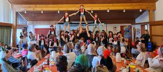 Ein besonderer Höhepunkt war unser humorvoller Auftritt „Meine Oma fährt im Hühnerstall Motorrad“. Alle amüsierten sich köstlich und es wurde immer wieder begeistert applaudiert. Heidi als Oma überzeugte mit ihrem schauspielerischen Können und wir Hühner überzeugten mit unserem Gesang.