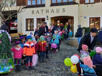 Ein weiterer Höhepunkt für die Kinder war am Freitag der Besuch in der Grundschule Nußdorf, wo auch die Chieminger Faschingsgarde auftrat und es anschließend Krapfen gab, die Bürgermeister Toni Wimmer spendiert hat.