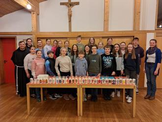Ende Februar trafen sich über 25 Ministranten zum Osterkerzen basteln im Pfarrsaal.