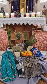 Wir hatten den Altar landestypisch geschmückt und es gab nach dem Weltgebetstag noch traditionelle Gerichte. Heidi hat Kubez el tahineh – Süße Thahin-Schnecken gebacken und Inge hat Baklava mitgebracht. Beim anschließenden Gespräch konnte man sich noch austauschen. Wir danken euch für eure Teilnahme und Spenden. C.K.