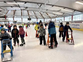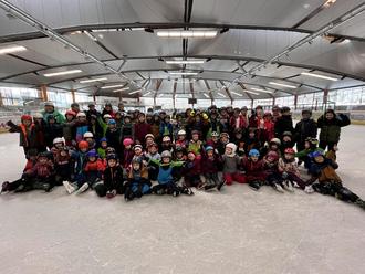 In der Eishalle angekommen, wurden zunächst einige Schlittschuhe ausgeliehen und alle Helme ordnungsgemäß aufgesetzt, bevor es schließlich auf die Eisfläche ging. Während einige Kinder bereits sicher ihre Runden drehten, wagten andere vorsichtige erste Schritte auf dem glatten Untergrund. Mit vielen helfenden Händen, den ausgeliehenen Lernhilfen, speziellen Übungen und aufmunternden Worten gelangen schnell erste kleine Erfolge. Besonders schön war zu beobachten, wie rücksichtsvoll und gemeinschaftlich die Schülerinnen und Schüler miteinander umgingen.