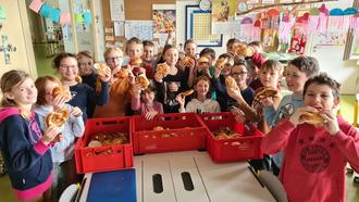 Nach der Rückkehr mit mehr als zehn gefüllten großen Müllsäcken gab es noch eine tolle Belohnung: Bürgermeister Toni Wimmer spendierte für alle Kinder eine leckere Brotzeit mit belegten Semmeln und Brezen. Ein herzliches „Vergelt`s Gott“ dafür, auch an unseren einmaligen Hausmeister Ernst Rachl, der sich um die Müllentsorgung kümmerte!