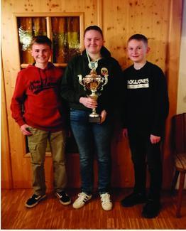 Von links Valentin Eder, Maria Freutsmiedl und Daniel Pöschl mit dem begehrten Gauwanderpokal.