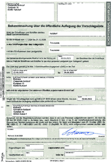 Bekanntmachung über die öffentliche Auflegung der Vorschlagsliste