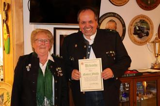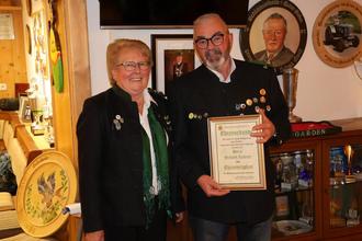 Seit 35 Jahren ist Gerhard Lackner aktives Mitglied der Schützengesellschaft Nußdorf und in den letzten 30 Jahren verwaltet er als Kassier die Vereinsfinanzen. Die enge Verbundenheit zum Schützenverein und das herausragende Engagement würdigte Schützenmeisterin Marlene Tögel mit einer besonderen Ehrung. Sie zeichnete Lackner mit der Goldenen Ehrennadel des Bayerischen und Deutschen Sportschützenbundes aus und ernannte ihn zum Ehrenmitglied der Schützengesellschaft Nußdorf. Tögel lobte Lackner für seinen unermüdlichen Einsatz und seine vielfältigen Hilfen und Unterstützung in unzähligen Vereinsangelegenheiten. Als Dank und Anerkennung für Lackners herausragende Tätigkeit für den Verein überreichte Tögel die Ehrennadel und Ernennungsurkunde zu Ehrenmitglied.