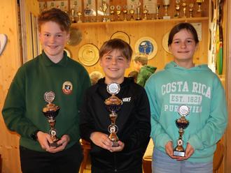 Robert Schönhuber (mitte) dominierte beim Endschießen der Jugendwertung (Luftgewehr) und siegte vor Markus Utschig (links) und Mathilda Schieche (rechts).